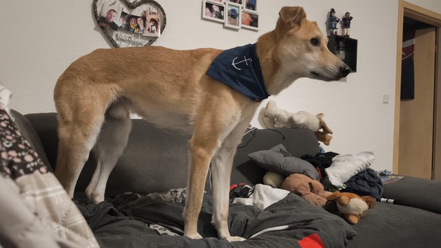 Als ich im April zu Mama und Papa nach Nordhausen kam, wusste ich mit meiner Angst nicht wohin, alles um mich war neu, die Geräusche, die Leute und so weiter alles war gruselig und erschreckend. Ich war in der Stadt am Anfang völlig überfordert, alles war neu und hat mir Angst gemacht wodurch ich oft krank und schlapp war. Mama, Papa und Oma haben mir aber geholfen diese Angst nach und nach zu überwinden. Auch wenn Papa jeden Montag mit seinem LKW ausgefahren ist und Donnerstags erst wieder nach Hause kam, habe ich mich schnell daran gewöhnt und weiß das er immer wieder nach Hause kommt, wenn er natürlich wieder zu Hause ist darf er nirgends hin ohne mich, sollte er es dennoch machen, begrüße ich ihn mit einem kleinen heulen, schwänzchenwedelnd auf der Couch, das gleiche ist natürlich auch bei Mama der Fall, wenn sie von der Arbeit oder vom Einkaufen kommt, ich stehe immer auf der Couch und empfange sie freudestrahlend.
