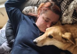 Zu Hause werde ich liebevoll versorgt, sei es mit einer Zahnstange, einer Beinscheibe oder einfach nur mit vielen Kuscheleinheiten auf der Couch. Sonntage sind mir die liebsten Tage, bei unserem Mittagsschläfchen liege ich gerne mit bei Mama und Papa im Bett manchmal einfach nur um Mama den letzten nerv zu rauben weil ich der Länge lang auf ihrer Decke liege und sie keine mehr hat