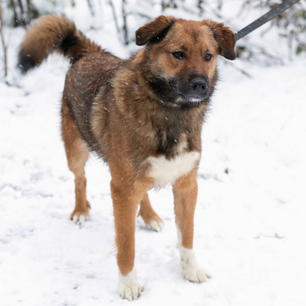 Grishas Geschichte begann traurig: Er wurde zusammen mit seinen Geschwistern als winziger Welpe vor den Toren des Tierheims ausgesetzt. Hier wuchs er auf und wurde stark, doch trotz der entbehrungsreichen Umstände hat er sich ein offenes und mutiges Wesen bewahrt. Grisha ist ein bestens sozialisierter Hund, der sich aufrichtig über jeden neuen Tag und jede Begegnung mit Menschen freut.