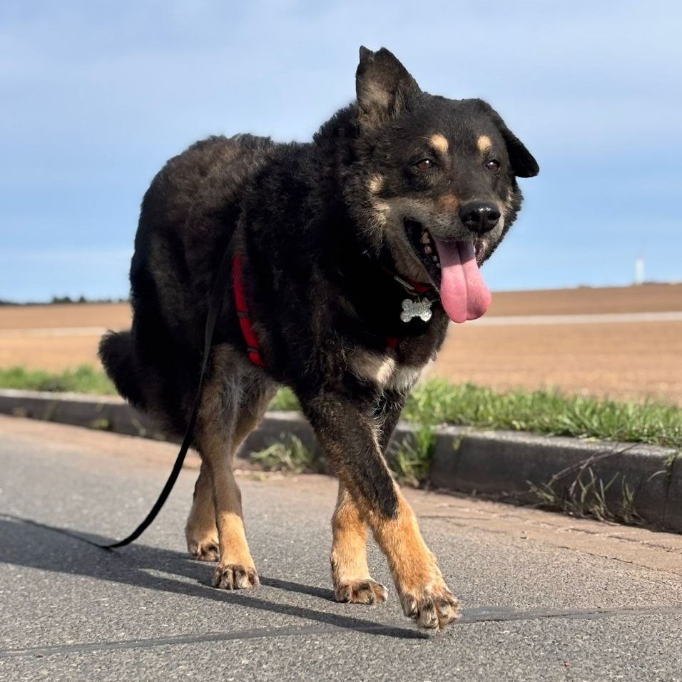 Entspannt, freundlich und munter wirkt unser Jean auf jedem, der das Kerlchen zum ersten Mal trifft. Kaum zu glauben, aber dieser Hund hat fast sein ganzes Leben im Tierheim verbracht. Erst bei alten Fotos des zweijährigen Jeans, schlank, mit dem glatten, blauschwarzen Samtfell, ins Tierheim gerade ankommend, wird einem bewusst, dass sieben Jahre eine sehr lange Zeit sind. Für einen Hund schön fast eine Ewigkeit.