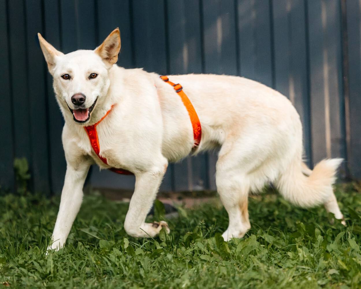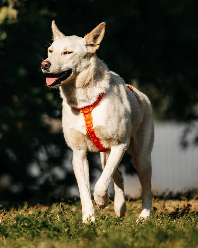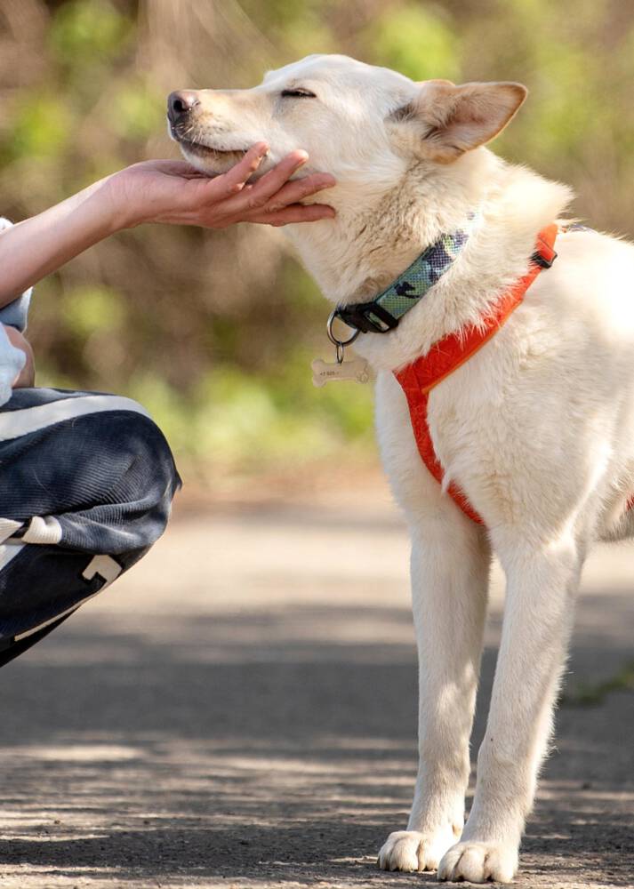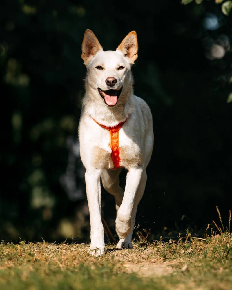 Fremden gegenüber zeigt sich Matryoshka anfangs vielleicht noch etwas vorsichtig, doch diese Zurückhaltung hält nie lange an. Ihre Neugier und ihr offenes Herz siegen schnell über die Schüchternheit. Sie ist sehr sozial, liebt die Gesellschaft anderer Hunde und genießt es, stundenlang mit ihren Artgenossen umherzuflitzen und zu spielen. Matryoshka ist eine kluge und fähige Schülerin: Sie läuft bereits gut an der Leine und verhält sich auch im städtischen Umfeld sicher. Obwohl der Trubel der Stadt keine Panik bei ihr auslöst, merkt man ihrem Charakter an, dass ein Zuhause in einer ruhigen Gegend oder auf dem Land, nah an der Natur, der ideale Ort für sie wäre.